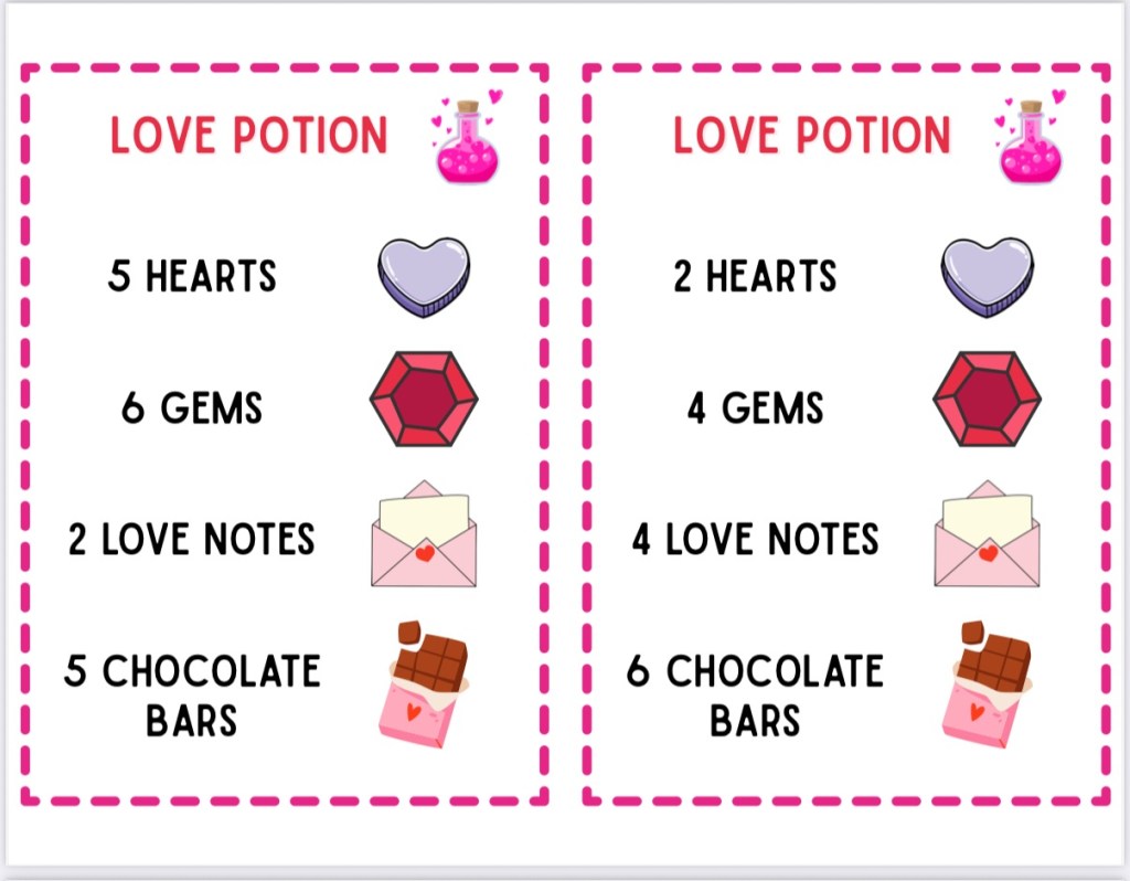 Students choose a number card Count matching ingredients Add items to their “potion” Stir and recount to check their work